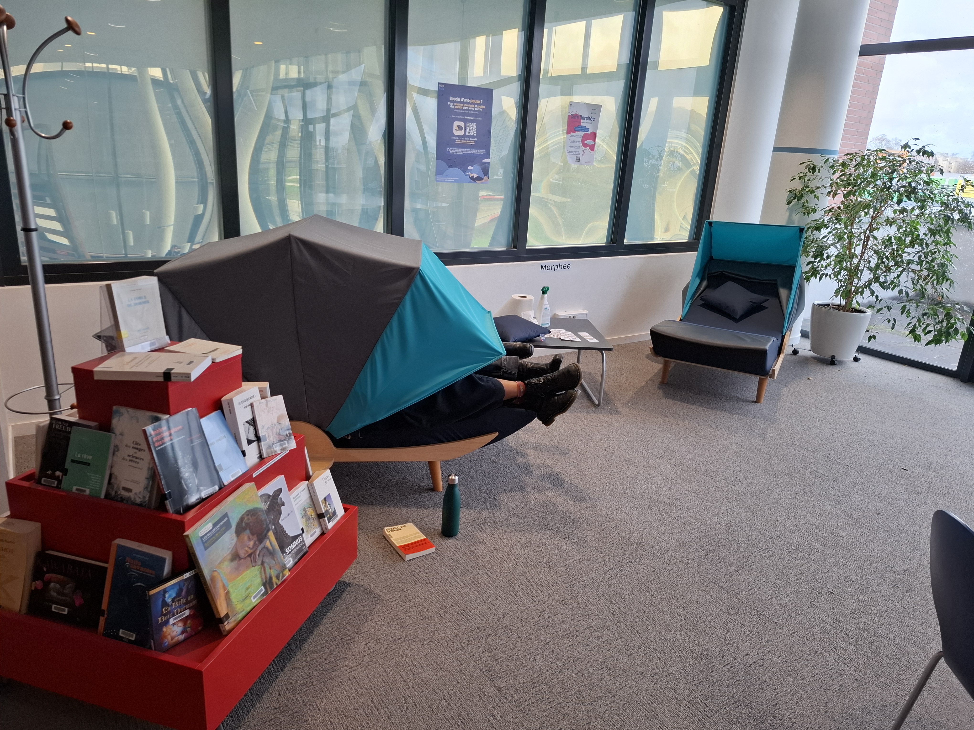 Des espaces détente sont disponibles dans la plupart des bibliothèques avec des fauteuils, poufs voire hamacs.