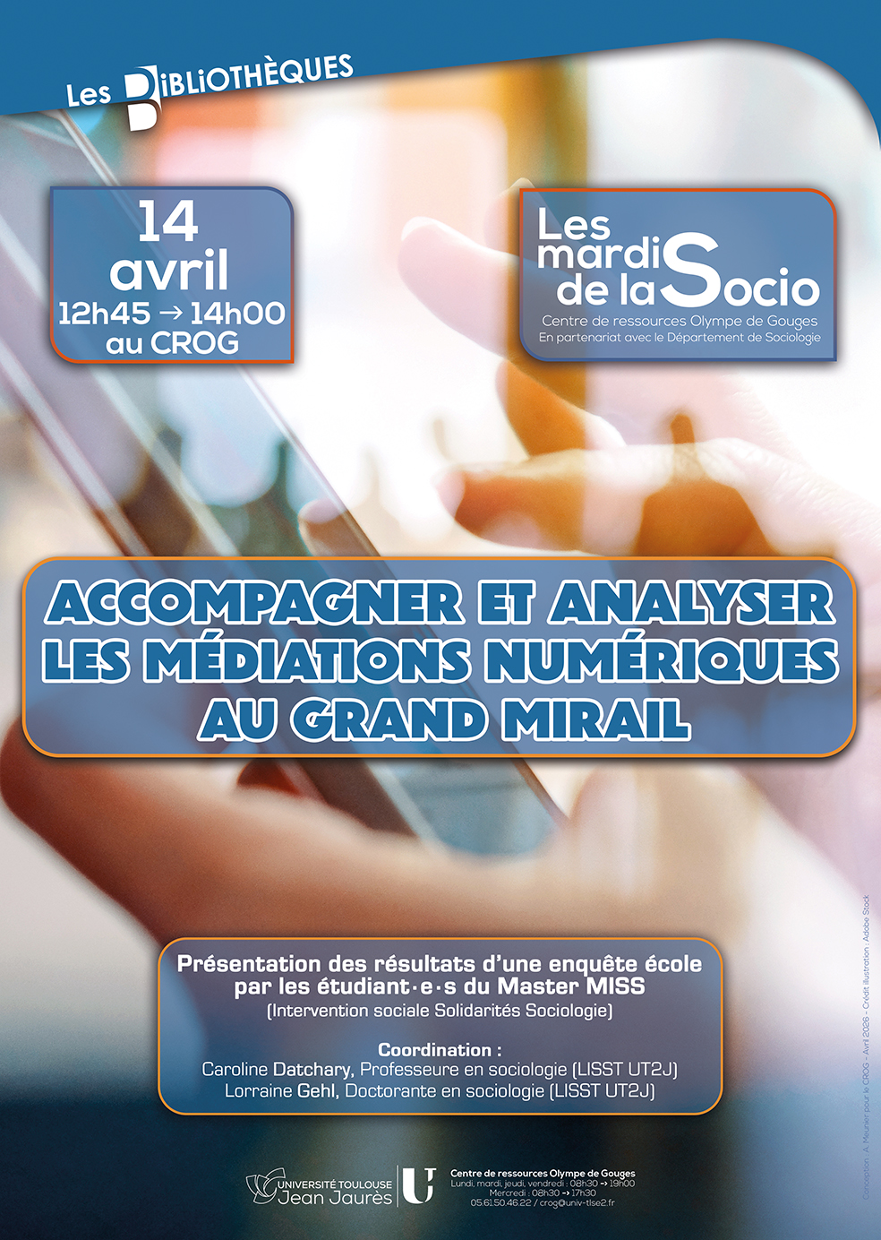 L’enquête école du master MISS s’inscrit dans un contexte de transition numérique marqué par la dématérialisation de l’accès aux droits sociaux et la transformation rapide du secteur social, dans un cadre de contraintes budgétaires fortes. Elle porte plus précisément sur les dispositifs d’accompagnement numérique dans le quartier du Grand Mirail, en cherchant à comprendre les tensions entre les politiques publiques, les logiques de financement et les réalités du terrain. À partir d’un travail d’enquête collective mené par les étudiant·es, combinant observations et entretiens auprès d’une diversité d’acteur·ices (associatifs, institutionnels, publics concernés), l’objectif est de produire un diagnostic localisé des décalages entre conception et mise en œuvre de ces dispositifs, mais aussi d’interroger leurs effets et leurs modalités d’évaluation. L’enquête accorde une attention particulière au contexte scolaire, notamment à travers des partenariats avec la structure Coll’in et le dispositif Mixité du rectorat, afin de saisir concrètement les usages et enjeux du numérique dans des situations situées, et de contribuer à une réflexion collective utile aux acteurs du territoire.
