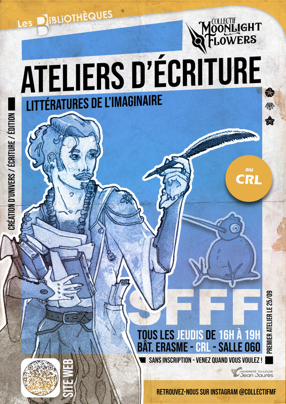 Tous les jeudis au centre de ressources des langues (CRL) à partir de 16h00, le collectif Moonlight Flowers propose des ateliers d'écriture ouverts à tou·tes et sans inscription.
