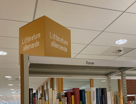 Intermédiaires entre la signalétique murale et la signalétique précise des étagères, ces cubes vous permettent ainsi de mieux vous repérer dans la bibliothèque.