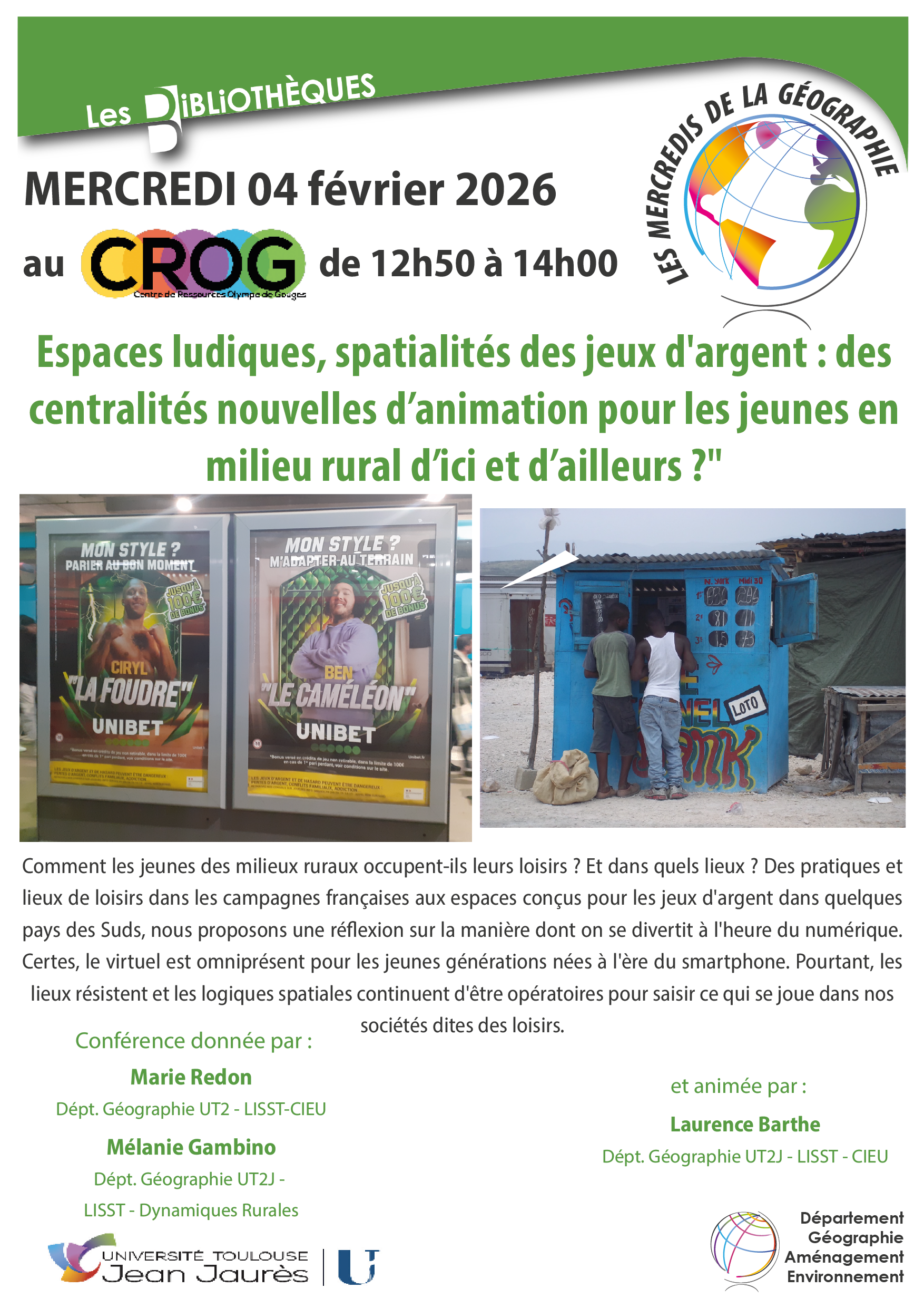 Centre de Ressources Olympe de Gouges, Espace revues RDCConférence dans le cadre des Mercredis de la Géographie