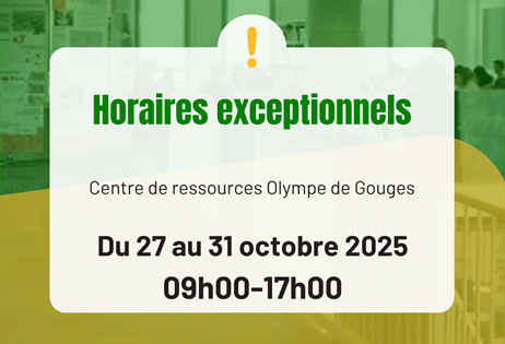 Le centre de ressources Olympe de Gouges sera ouvert de 9h. à 17h. la semaine du 27 au 31 octobre 2025.