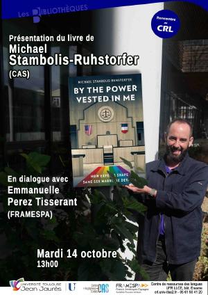 - Michael Stambolis-Ruhstorfer est enseignant à l'UT2J, chercheur au Centre for Anglophones Studies (CAS). Mardi 14 octobre à 13h00, en dialogue avec Emmanuelle Perez Tisserand, enseignante à l'UT2J et chercheuse à FRAMESPA, il présente son livre By the power vested in me - Columbia University Press, 2025